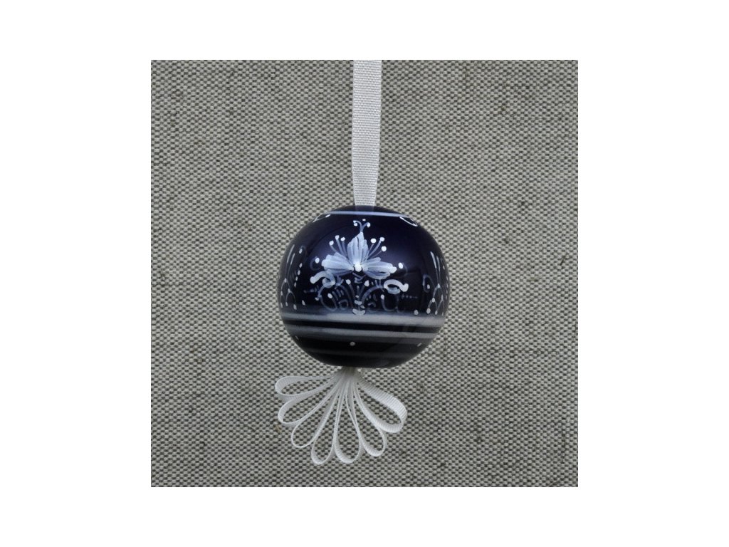 Decorative ceramic ball on a ribbon.
