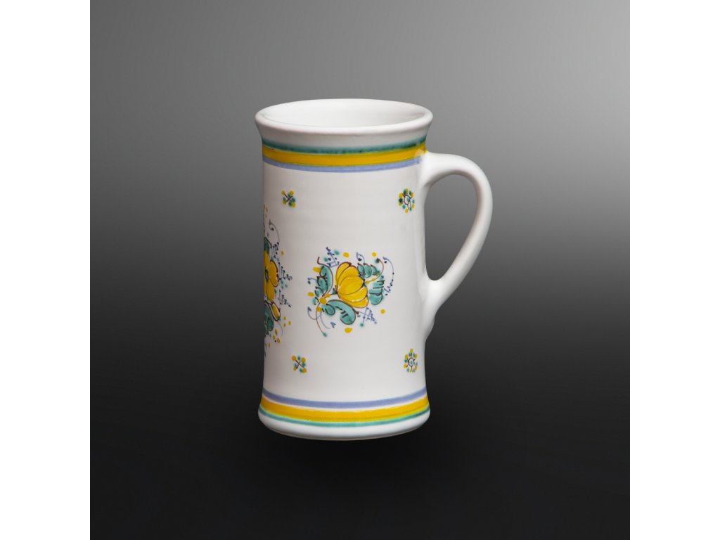 White glazed and hand painted with green and yellow decor.